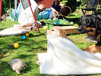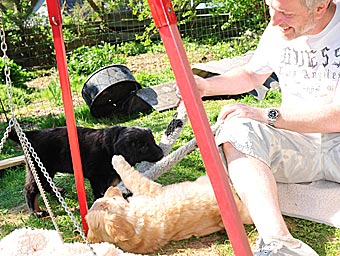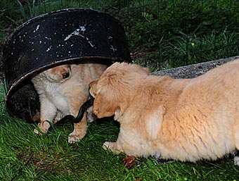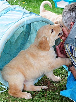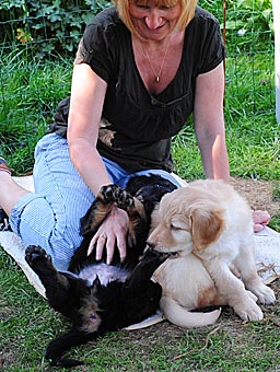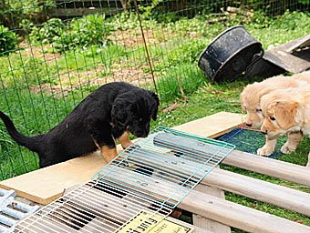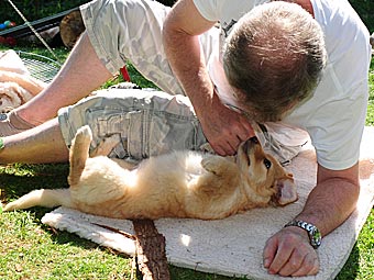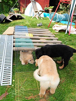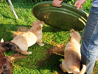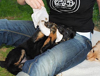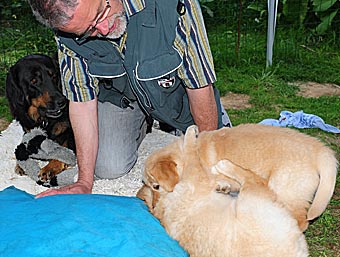Egal, was wir machen - immer kommen sofort neugierige Welpen und wollen es ganz genau wissen.