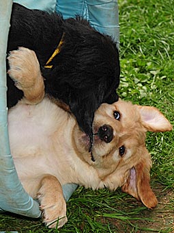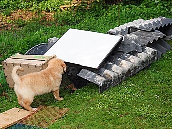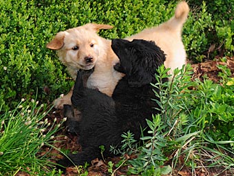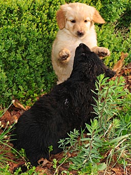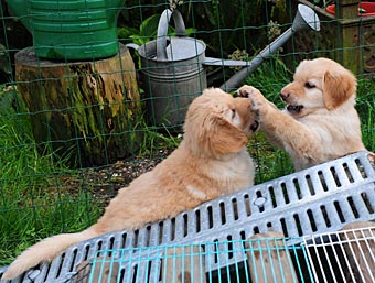 Bogart liebt es, über die Bretter zu klettern — Henry und Happy sind besonders oft zusammen.
