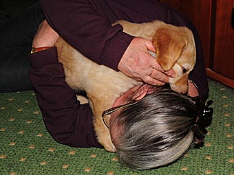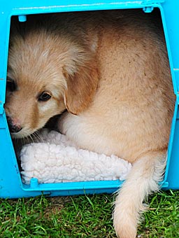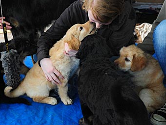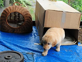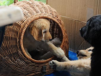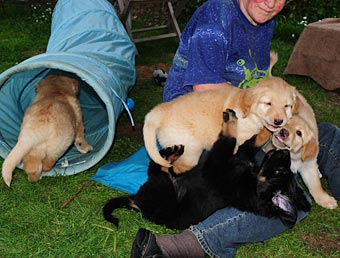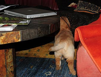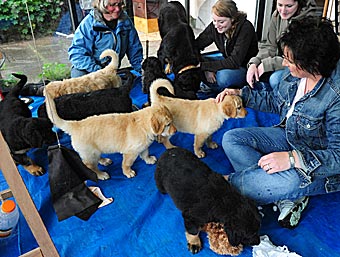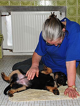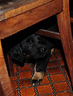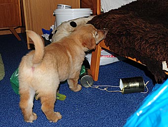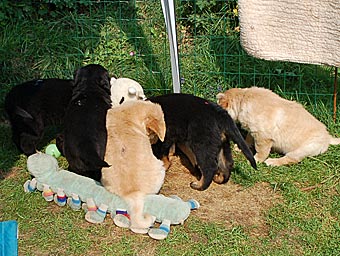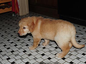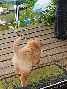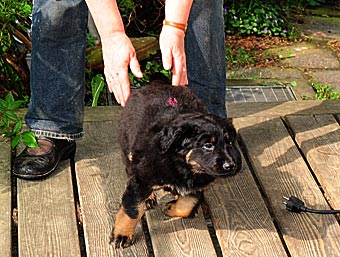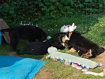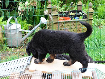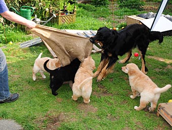 Heute haben wir mit allen Welpen einzeln einen Stubenrundgang durch unsere obere Wohnung gemacht.