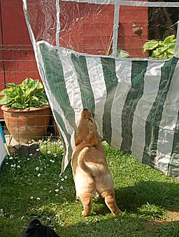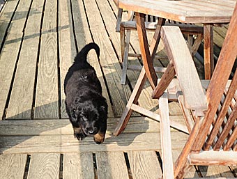 Bogart erkundete den ganzen Balkon und merkte gar nicht, wer ihn da beschnupperte.