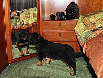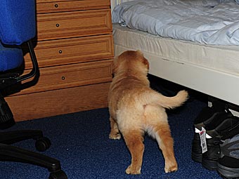 Bär rangelte im Schlafzimmer mit Frauchen und schaute sich auch in der Küche um.
