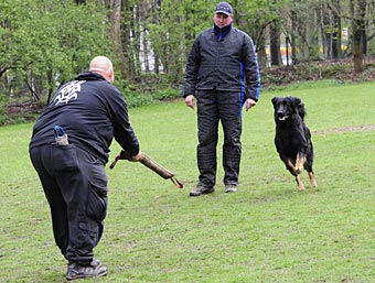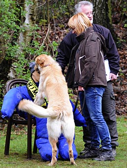 Er ist lebhaft und und spielt ausgeprägt mit gutem Kontakt zu Hundeführer und Helfer. In der Menschengruppe ist er sicher und nimmt Kontakt auf. Bei der Puppe ist er interessiert und nimmt unbefangen Kontakt auf.