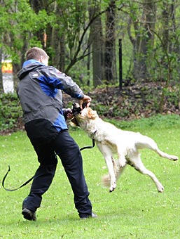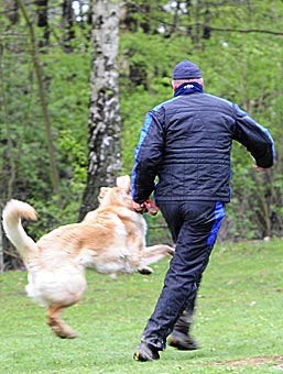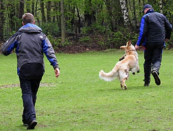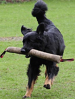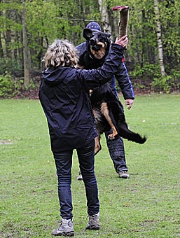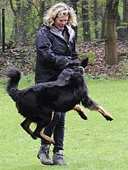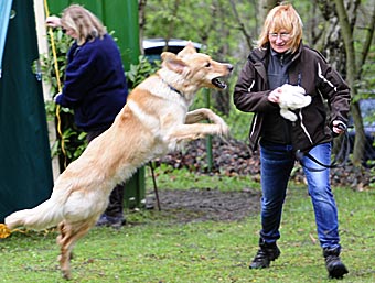 Sie ist lebhaft und hat einen ausgeprägten Beutetrieb mit gutem Kontakt zu Hundeführer und Helfer.