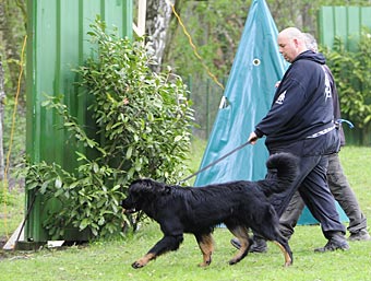 Er ist lebhaft und hat einen ausgeprägten Beutetrieb mit gutem Kontakt zu Hundeführer und Helfer. In der Menschengruppe ist er sicher und nimmt Kontakt auf. An den Stationen ist er unerschrocken und interessiert. Er ist unbefangen und nimmt problemlos Kontakt auf.