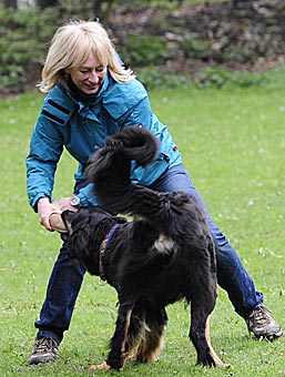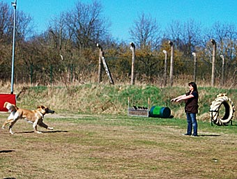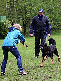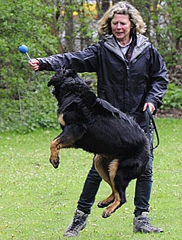 Sie spielt ausgeprägt mit gutem Kontakt zum Hundeführer.
