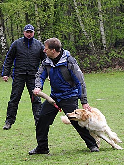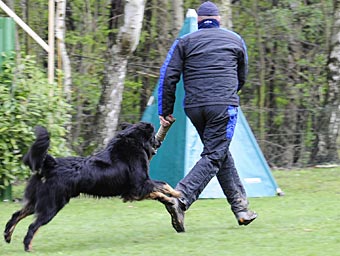 Er ist lebhaft und hat einen ausgeprägten Beutetrieb mit gutem Kontakt zu Hundeführer und Helfer.