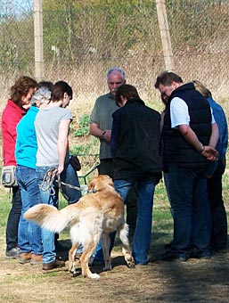Bei der Erscheinungsbildbeurteilung zeigt sie sich unbefangen, in der Menschengruppe ist sie sicher und nimmt Kontakt auf. Bei der Kette ist sie unerschrocken und interessiert, Kontaktaufnahme ist problemlos. Sie ist lebhaft und spielt ausgeprägt mit gutem Kontakt zum Hundeführer.
