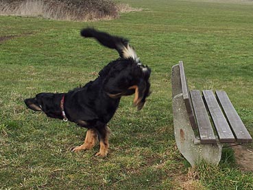 An ihrem ersten Sylvester hat sich Bea an die vereinzelten Böllerschüsse vor 24.00h nicht gestört und kurz vor Mitternacht bekam sie dann ein großes Stück Nackenstrang zum Kauen, womit dann alles andere sofort gänzlich unwichtig wurde ,-)) ! Nach ca. 15 Minuten ist Frauchen dann mit ihr auf die Terrasse und zum pieseln in den Garten gegangen (Gringo musste drinnen bleiben, da er sonst wild und laut bellend durch den Garten getobt wäre). Und obwohl nach wie vor noch Feuerwerk zu sehen und zu hören war, war ihr das ziemlich egal. Die Leckerleis in Frauchens Hand waren doch viel interessanter. Als sie dann nach weiteren 15 Minuten nochmals draußen war, hat das Feuerwerk die coole Bea gar nicht mehr interessiert. |