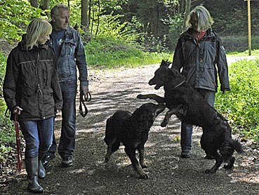Inzwischen ist Bea 7 Monate alt und geht regelmässig zum Junghundetraining nach Rodenbach. Es wird (im Ansatz) 'Fuß' gehen geübt, Slalom um die anderen Hunde und ihre Besitzer, Slalom um fremde Personen, die dann auf das Team zukommen, Sitz, Platz mitten in der Gruppe usw.