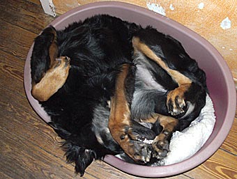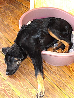 Bea liebt es immer noch in ihr erstes Körbchen zu gehen |