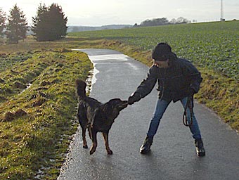 Zuhause und beim Spaziergang wird natürlich auch fleißig trainiert.