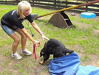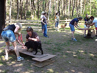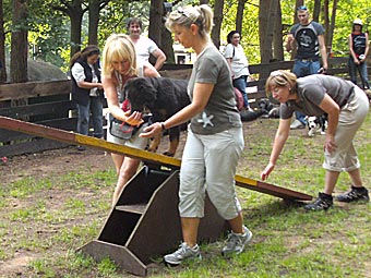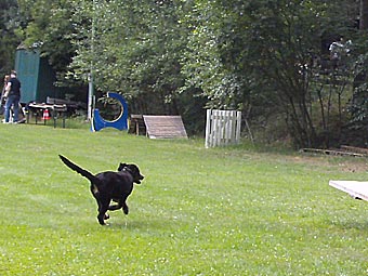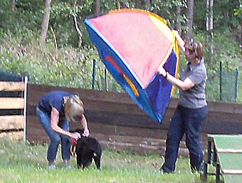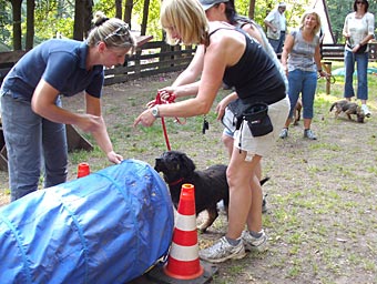Bea wurde von der Übungsleiterin festgehalten, während Frauchen sich am anderen Ende des Platzes in ein Igluzelt begab.