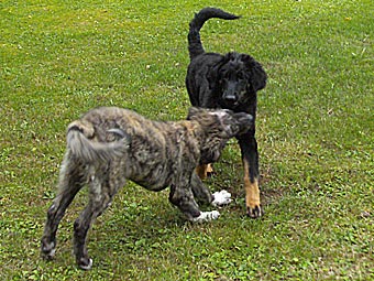 Beas Freund Wotan, Germanischer Bärenhundwelpe, war heute bei seiner 2. Welpenstunde sehr zum Spielen aufgelegt auf der ausgelegten Folie.