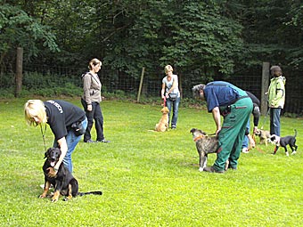 Zuerst wurden alle Welpen gleichzeitig abgeleint zum spielen. Danach ging es mit den ersten Übungen los.