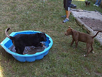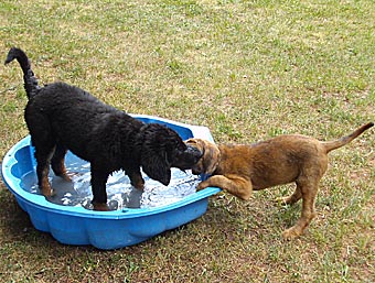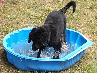 Ständig stand sie darin, aber das war ja auch das beste Plätzchen, weil es heute ganz schön warm war während der Welpenstunde.