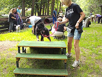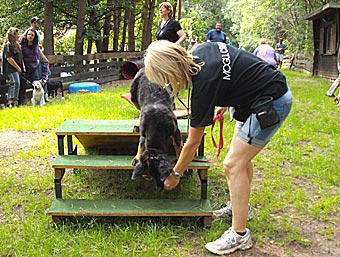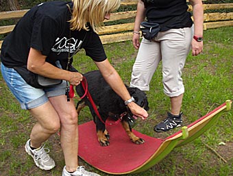 Das Podest mit Treppe ist für Bea eine ihrer leichtesten Übungen.