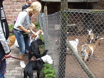 Sie Frettchen in dem Gehege auf dem rechten Bild waren wohl ganz besonders interessant.