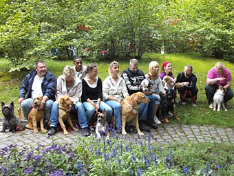 So war Bea in einer schönen überschaubaren Gruppe. Ihre Gruppe musste auf den großen Platz ausweichen, auf dem gleichzeitig das Junghundetraining lief. Das bedeutete: Gut aufpassen, dass die Kleinen nicht zu den Größeren laufen, was auch gut gelang.