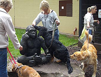 Vor dem Zoo saß eine Gorillafigur, von der die Trainerin meinte, dass einige Hunde großen Respekt davor hätten