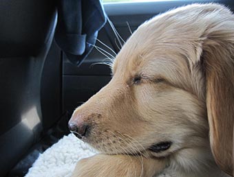 Bellis hat von allen B'lis inzwischen wohl die weiteste Reise unternommen. Sie war in Wien und hat dort u.a. eine nette Golden Retriever Hündin getroffen, mit der sie sich super verstanden und viel getobt hat. Auf der langen Autofahrt war sie brav und ruhig.