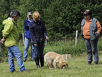 Dann wurde Bellis geholt: zum Quadrat führen - ein Leckerchen reinwerfen - suchen lassen ...