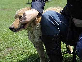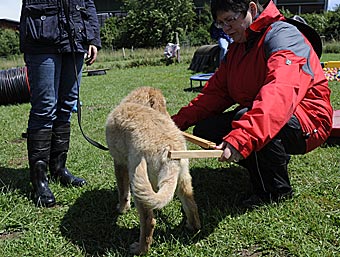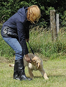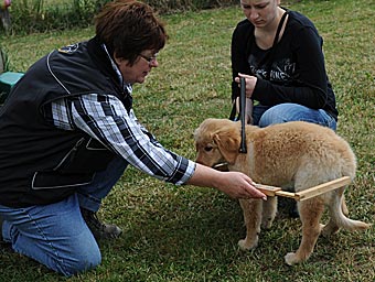 Duldungsübungen: Streicheln an den Lefzen, um das Zähne zeigen zu üben und Gewöhnung an das Messen mit einem Körmaß