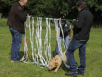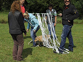 Abrufübung durch den Tunnel und unter dem flatternden Tuch hindurch