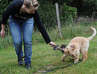 Das Heranrufen klappte bei allen Welpen prima. Alle haben schon eine sehr gute Bindung zu ihren neuen Familien.