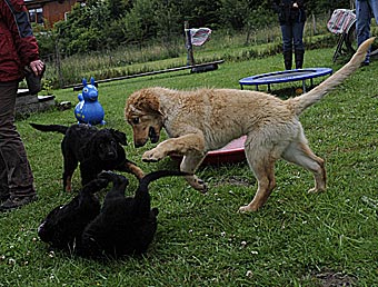 Weitere Fotos von unserem Lieberhausener Welpenkleeblatt findet man bei Bogart, Bora und auf der Welpenspielseite