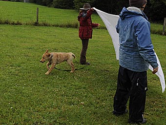 Abrufübungen mit Welpenspalier und durch die Flatterbänder