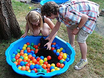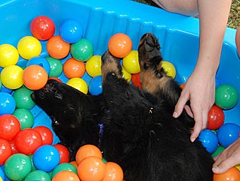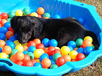 Bogart hat jetzt sogar sein eigenes Bällebad und sein Planschbecken ...