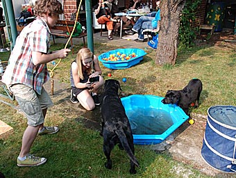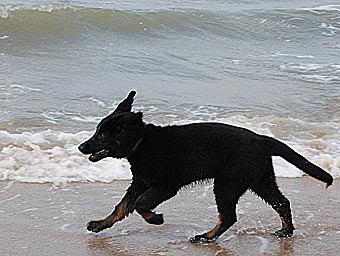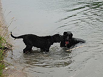 Mit anderen Hunden zusammen entwickelt er eine immer größere Wasserliebe ;-)) .
