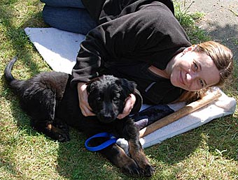 Bogart hat sich in den letzten Tagen prima entwickelt; Herrchen ist begeistert. Bogart bringt nichts aus der Ruhe und er hat vor nichts und niemandem Angst. Nur beim Auto fahren beschwert er sich noch.
