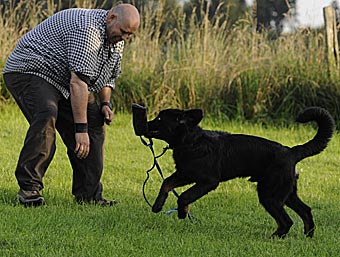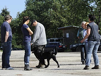 Nach einer kleinen Fährtenübung wurden erste Schritte zum "Fuß" trainiert