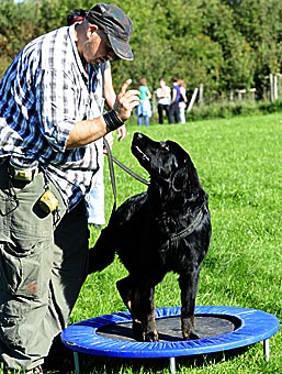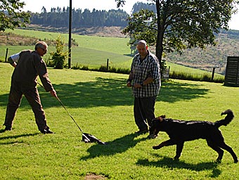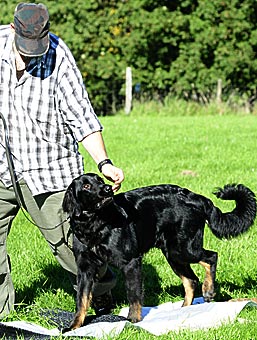 Zuerst wurde wieder ein Fährtendreieck geübt und nach einem tiefen Blick in Herrchens Augen ...