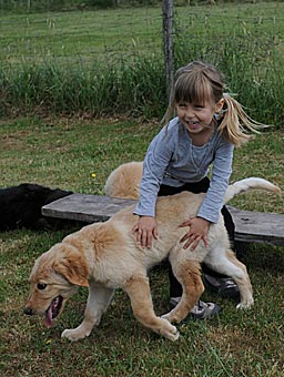 Bora hat sich erstaunlich schnell eingelebt und ihr Rudel angenommen. Tochter Lena ist auch sehr vorsichtig und stolz, dass sie Bora immer das Futter geben darf