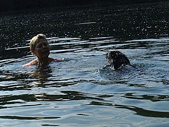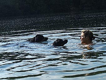 Vorgestern war Lotte zum ersten Mal schwimmen. Nachdem die Kleene erst mal heftig 'gemotzt' hat, weil Georg, Paula und Frauchen ins Wasser gegangen sind, musste sie - gezwungenermaßen - hinterher. Aber dann, dann fühlte sie sich 'hovawartwohl' :-)) |