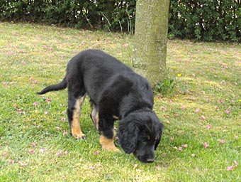 Happy erkundete gleich den Garten. Hier riecht es so ganz anders als zuhause ...