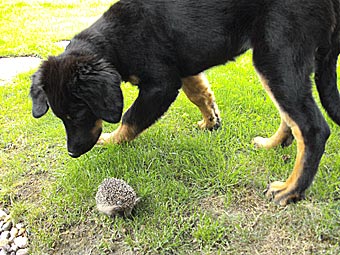 sie fällt ständig die Terasse runter - siehe Foto -, läuft vor Türen und ähnliche Teile, freundet sich mit Igeln an