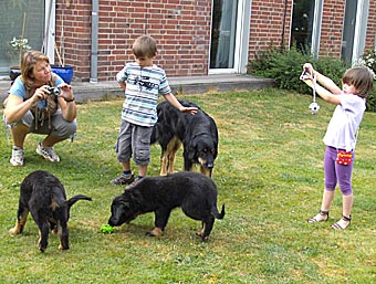 So lernen die Hunde gleich, auch mit Kindern umzugehen. Die Beiden sind echt süß und haben ganz toll mit den Kleenen gespielt!