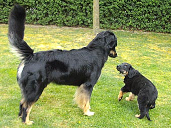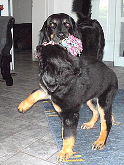 Zu Hause angekommen wurde die Kleene von Hovawarthündin Paula freudestrahlend empfangen - jedenfalls zunächst. Sie haben sich beschnuppert und beäugt ... es gab keine Probleme. Happy hat ständig versucht, Paula zum Spielen zu animieren! Aber als Happy dann Paulas Ball entführen wollte, war diese nicht mehr ganz so begeistert und hat es ihr - aber schon noch nett - auch gezeigt.