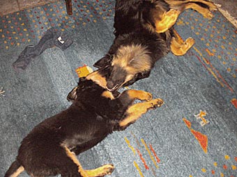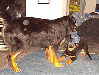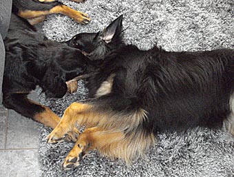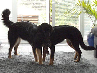 Happy Lotte ist immer noch klasse und macht Frauchen ganz viel Spaß. Allerdings ist sie manchmal ziemlich aufdringlich der Paula gegenüber und hat auch schon einmal schmerzlich erfahren müssen, dass die Große sich nicht alles gefallen lässt. Paulas Fressnapf sollte für Lotte tabu sein und als sie sich über diesen hergemacht hat - Paula stand zur gleichen Zeit dort - wurde sie gezwickt! Aber ansonsten verstehen sich die Beiden immer besser!