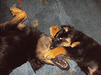 ihrer Frauchen "aufgemischt" und konnten es nicht lassen, ständig die gelben Bälle zu klauen! :-))