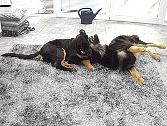 Silvester war für die Kleene, die mittlerweile größenmäßig Paula locker um ein Beträchtliches überholt hat, überhaupt kein Problem! In Aldekerk hatte man das Gefühl, der 3. Weltkrieg ist ausgebrochen - es wurde geknallt, was das Zeug hält und es war teilweise taghell! Aber Lotte ließ sich davon überhaupt nicht beeindrucken, Paula übrigens auch nicht! So konnten Frauchen entspannt noch nach 0.00 Uhr mit den Nachbarn ein Gläschen Sekt schlürfen! |