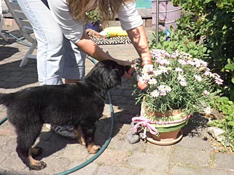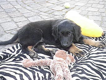 Noch nicht mal 2 Wochen später gab Henry super Laut auf Kommando; so dass Frauchen nun an einem Kommando pschsch(Sei leise) arbeitet. Das klappt aber auch schon klasse. Schinkenwurst rettet er auch immer noch sehr gerne, und auf die Welpengruppe freut er sich sehr. Er hat keinerlei Probleme im Umgang mit allem Neuen. Naja, über die Erde fliegende Luftballons findet er etwas sonderbar. Aber jetzt gibt es bei uns natürlich immer mal wieder den einen oder anderen Luftballon.