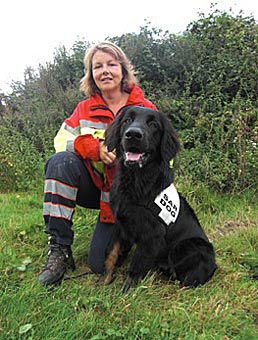 Dann gabs von Frauchen das erste Mal das Kommando "Such und Hilf". Da ist es ihr schon einwenig kalt über den Rücken gelaufen, da sie dieses Kommando einfach nur grandios findet. Es gab natürlich noch ein Handzeichen in die Richtung des Opfers. Henry machte sich dann flott auf den Weg über Stock und Stein, stolperte auch schon mal über störrisches Gestrüpp, ohne sich von seinem Ziel (Fleischwurst) abbringen zu lassen.