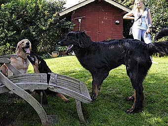 Wasser ist eigentlich nicht Henry's Lieblingselement. Bis zu den Füßen war's o.k. - wenn er einer Spielfreundin hinterher hüpfte, reichte das Wasser auch schon mal bis zum Bauch. Aber nun war Frauchen mit ihm schwimmen! Mit riesen Sprüngen ist er hinter Sabine her ins Wasser, als ob er noch nie etwas anderes gemacht hätte. Er ist bis zum Frauchen geschwommen, ist dann mit ihr umgedreht und an Land gegangen! Toll gemacht!