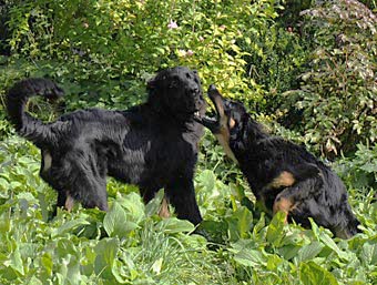 Die Autofahrt hat BigHenry gut überstanden. Er war ziemlich "cool" drauf! Frauchen Sabine ist schon ganz verliebt in ihren kleinen Wonneproppen. Und auch Henry scheint zu wissen, dass er zu ihr gehört. Es gibt kein Jammern, nur Freude! Alle Geschäfte - ob Groß oder Kein - hat er bereits im Garten erledigt. Bis jetzt ist er stubenrein. Das wird sicher nicht so bleiben, aber Frauchen arbeitet dran. Auch mit Henry's neuem Kumpel Foxterrier Lucky klappt es gut. |