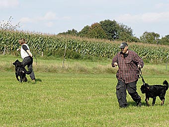 Es war ja alles neu für ihn. Fremdes Gelände wie Trümmer, verfallene Häuser, Gestrüpp, aber auch so etwas wie eine Wiese. Dort wurde gearbeitet. Frauchen hielt Henry fest, während ein Helfer ihn mit o.g. Tüte "heiß" machte. Der Helfer lief dann ca. 10 bis 20 m weg und hockte sich hin.