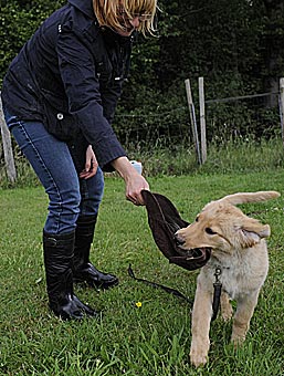 Auch mit einer Mütze kann man ein tolles Beutespiel machen. Bellis hat jedenfalls Spaß daran.